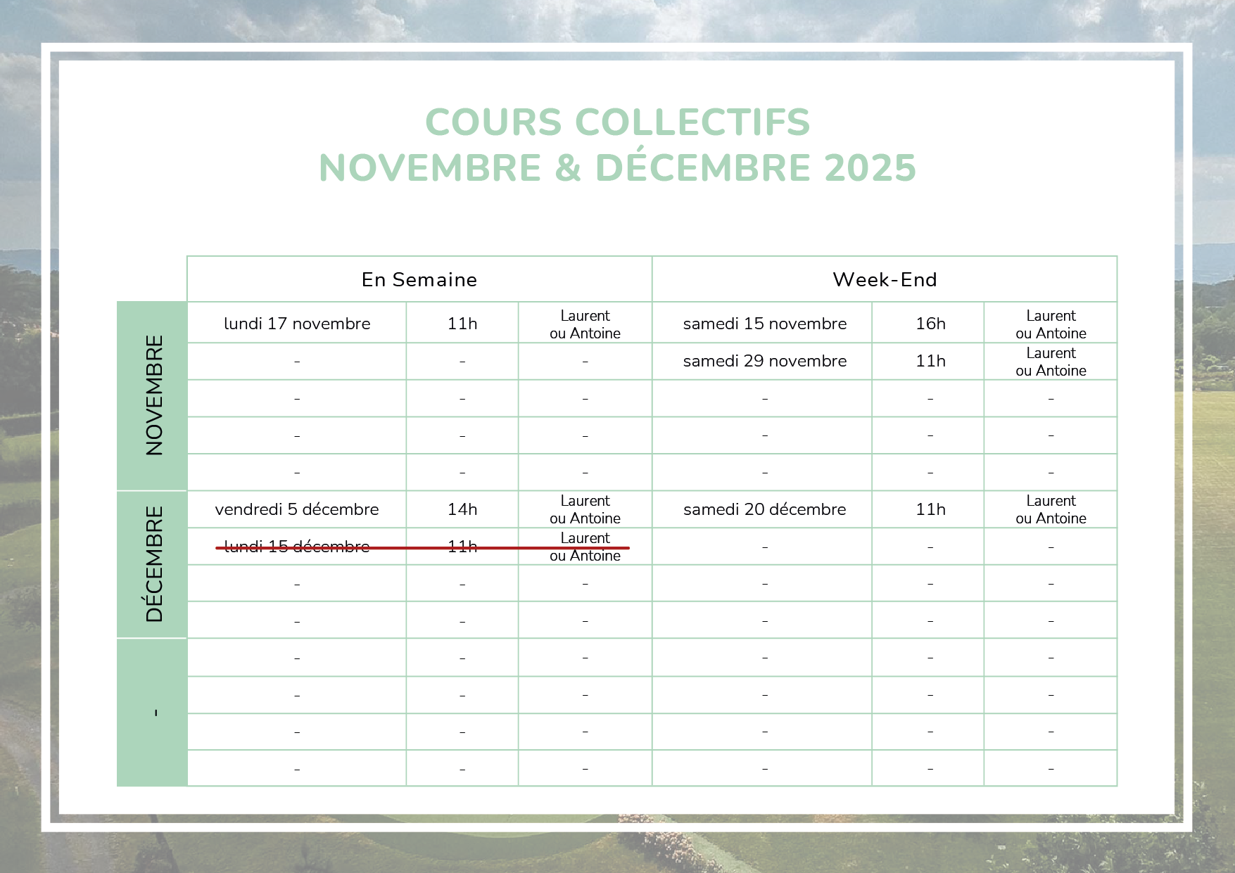 • S’il y a moins de 4 inscrits, le cours sera annulé.
